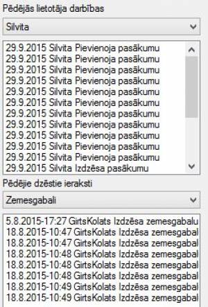 Iespējams meklēt lietotāju darbības izmantojot pirmā attēla redzamos meklēšanas rīkus.