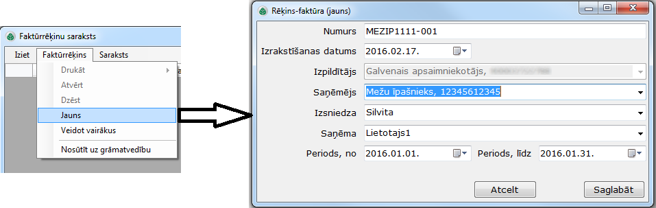 2. attēlā ir piemērs, kur tiek veidots faktūrrēķins par 2016. gada janvāri.