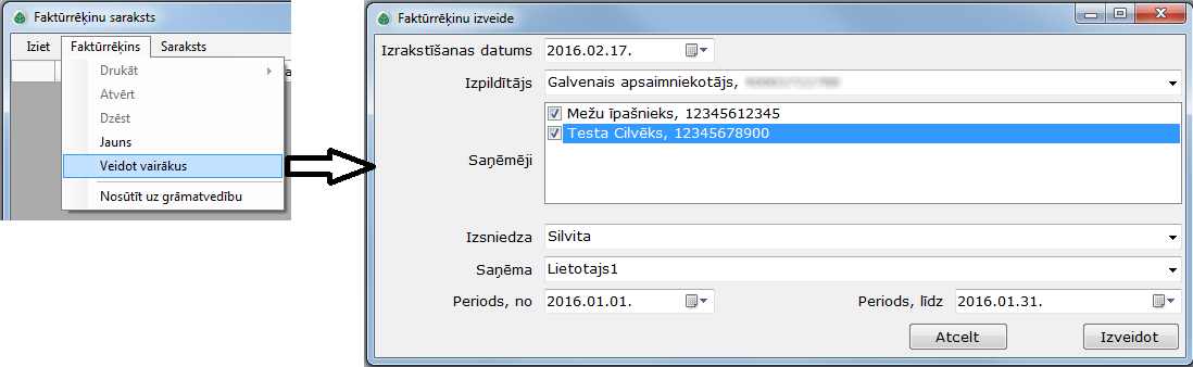 • Saņēmēji - jāatzīmē visas personas, kuriem veidot rēķinus.