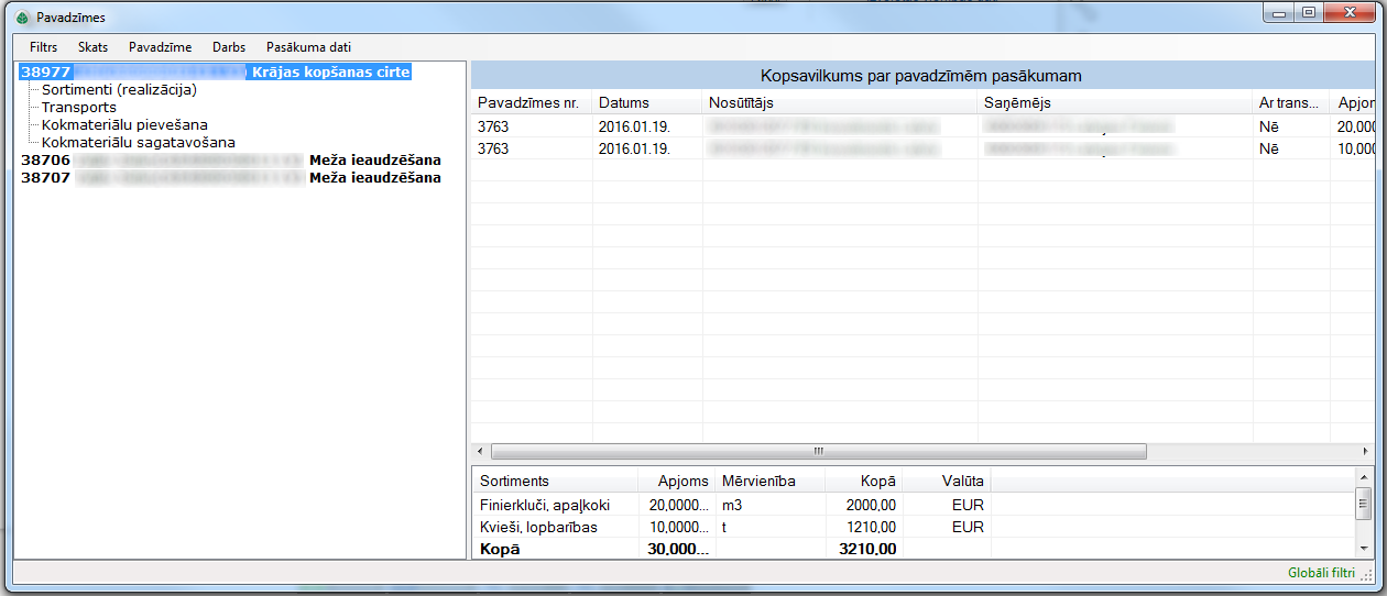 • Pavadzīme - darbības ar kokā izvēlēto pavadzīmi.