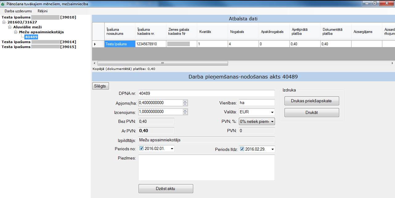 Sistēmā iespējams plānot mežsaimnieciskus un lauksaimnieciskus apsaimniekošanas pasākumus, darbus un to rēķinus.
