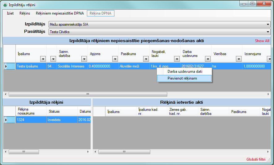 Nākamais solis ir izveidotā DPNA pievienošana rēķinam, kas darāms izpildītāju rēķinu veidlapā.